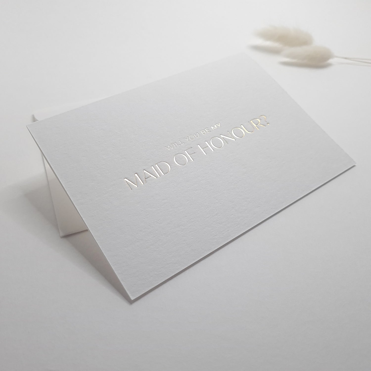 Invite your closest friends to share in the joy of your wedding with our timeless, handcrafted bridal party proposal cards.