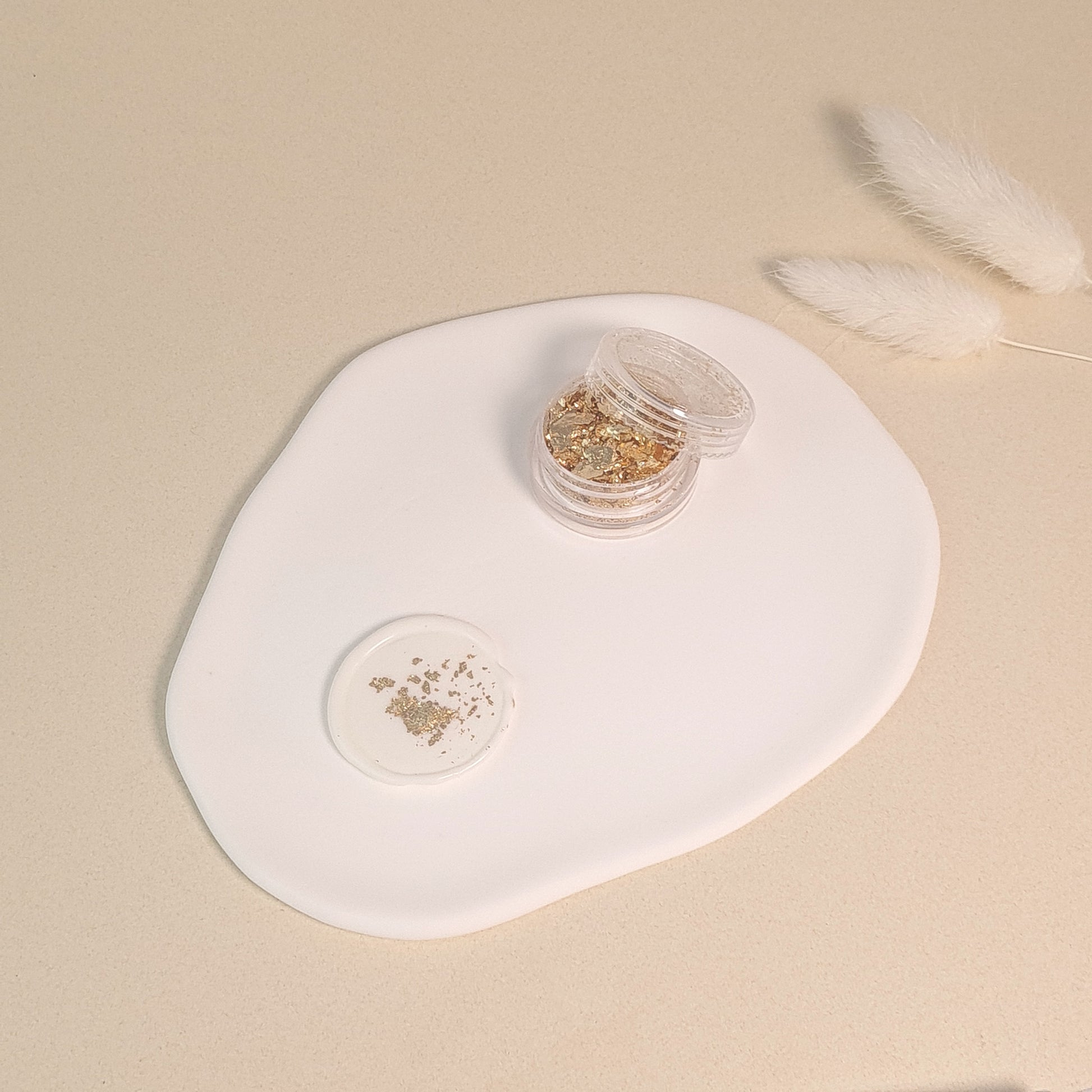 - Place the foil leaf in warm wax, then swiftly stamp with your Wax Seal Stamp